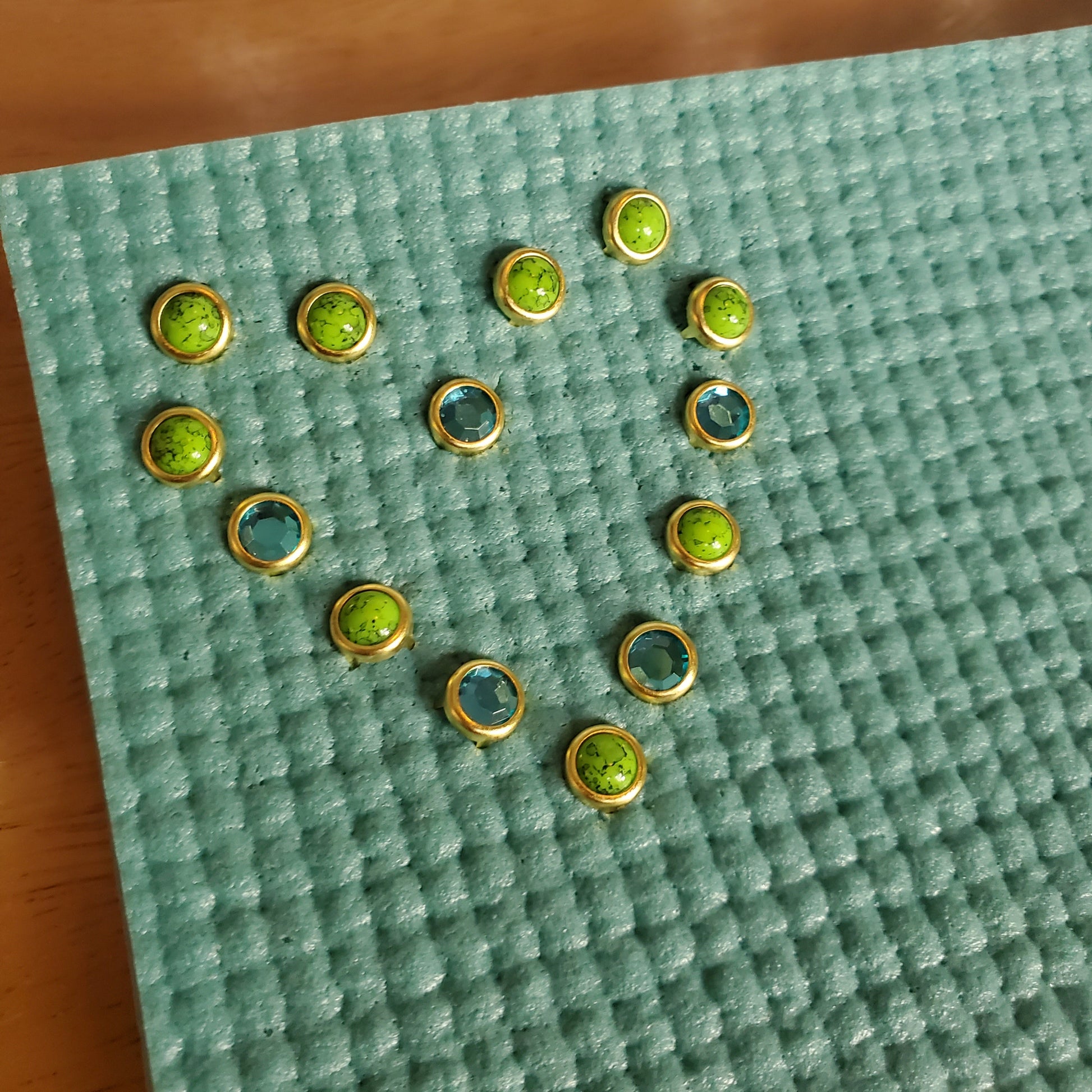 We recommend placing your gems a 1/2 inch apart when creating your yoga mat charm design and always place around the outer rim or corners for the best Yoga Mat Charm experience. Please scan the qr code on the back of your box for install directions.