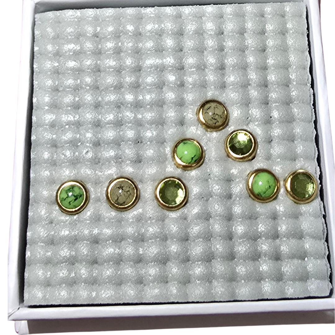 3 Green stones, 3 Green gems and 2 Yellow stones all set in gold.