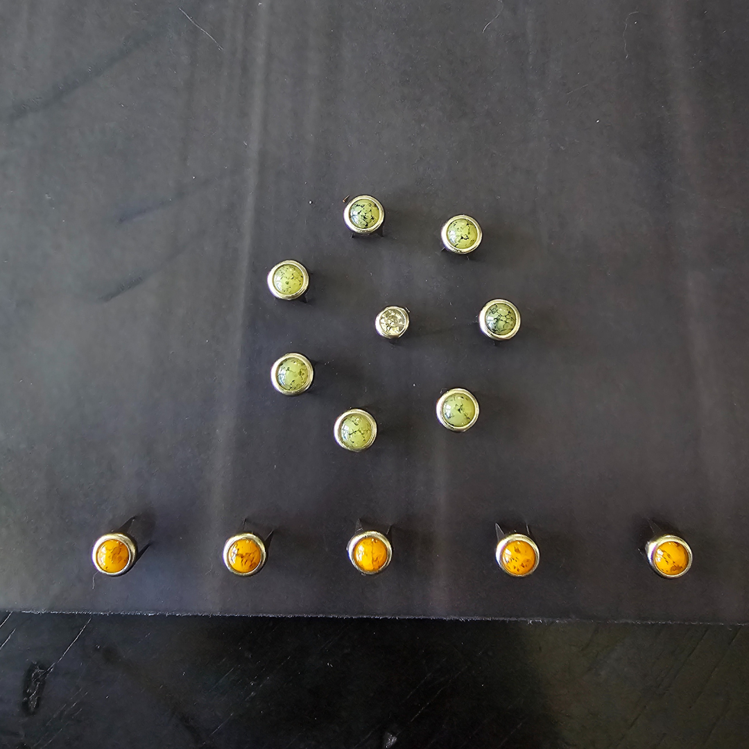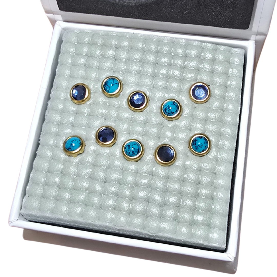 5 Dark Blue Gems and 5 Turquoise stones set in gold.